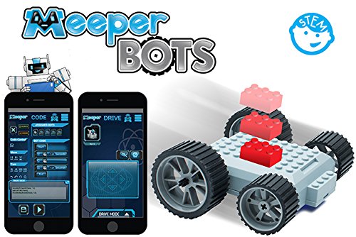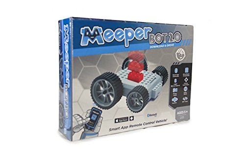 -. Feature : Free Smart Device Controller App makes your creations move. App is available for Apple or Android, tablet or phone, even Kindle Fire - any device with BLE 4.0. / Digital Controller App is rich with 3 Drive Controller Modes (Command, Touch, Tank), BOT coding, Comics, Sounds, Video, 8-way multi-BOT control and an energy leash! / Ground-breaking BOT Code allows you to create a program and run the code on your meeperBOT or virtual BOTS. Use Scratch-like, drag-n-drop program commands and watch your BOT execute your code! / Durable ABS plastic brick building platform and chassis is fully brick-block compatible - top and bottom, inside and out with a front and reach hitch and removable wheels. / Dual, rear-wheel 300 RPM motors give your BOT plenty of power for races, battles and rugged terrain.
