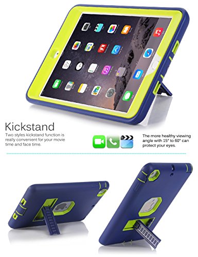 iPad mini Case,iPad mini 2 Case,iPad mini 3 Case,TOPSKY [Kickstand Feature],Shock-Absorption High Impact Resistant Hybrid Armor Defender Case for iPad Mini 1,2,3 With Stylus Pen,Navy Blue/Lemon yellow