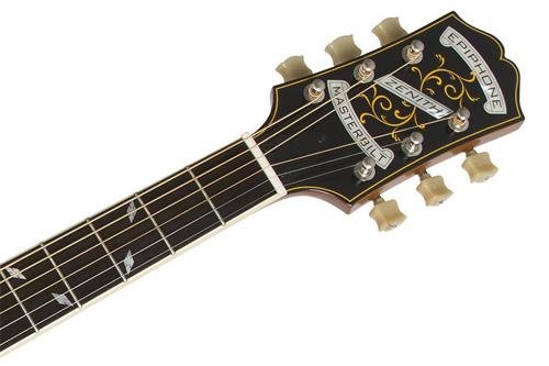 Studio : Epiphone Publisher : Epiphone Binding : Electronics Product Description In the 1930s Zenith had a headstock with decorative colored engravings characterized by the white banners proudly identifying the Master built product line. By 1936 the Zenith model had been resized twice before arriving at the classic 16 3/8" bodied version that persisted well into the 1950's. Now Epiphone has brought the Zenith back in all it's vintage glory. 0