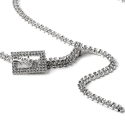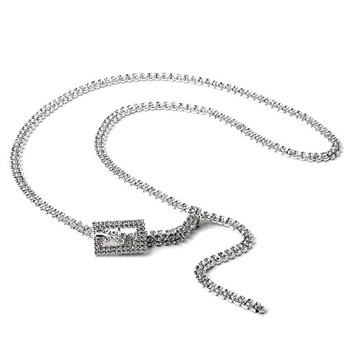 Product DescriptionSilver Crystal Rhinestone Double Line Belt with Small Rectangle Buckle0