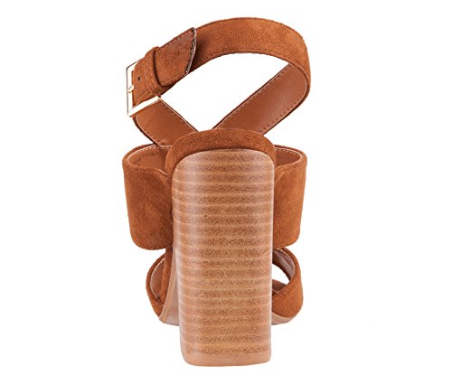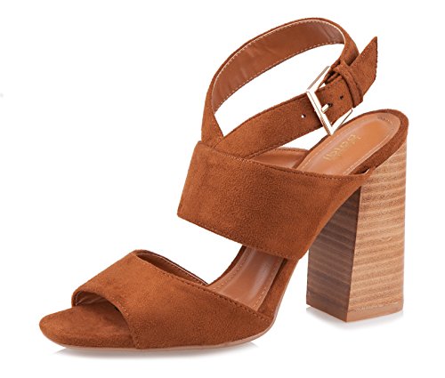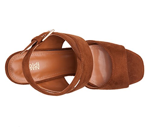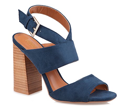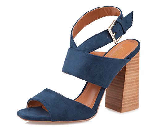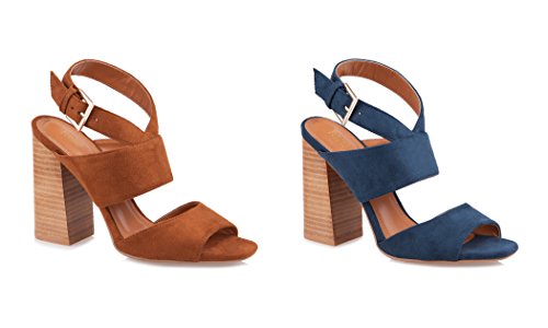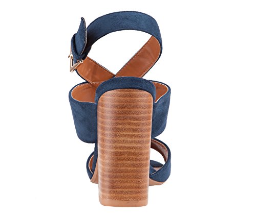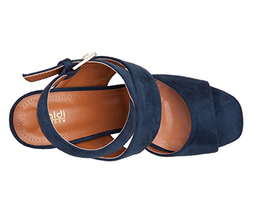 (BALDI)/Women's/Sandals/DIRECT FROM USA/BALDI Women's Orinoco Navy/Tan City High Wide Square Heel Event Peep Toe Sandals Ankle Strap Bu...