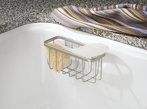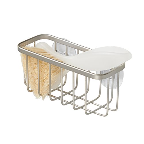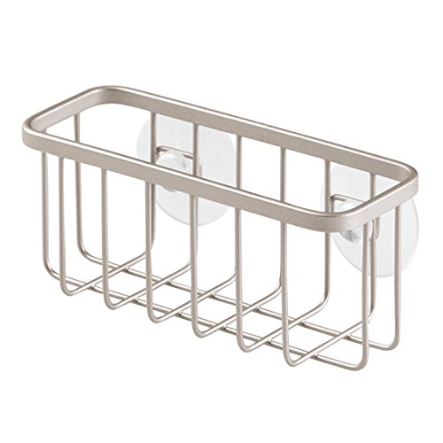 mDesign Kitchen Sink Suction Holder for Sponges, Scrubbers, Soap - Rectangular, Satin