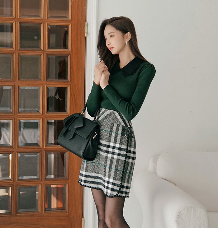 商品名:タイトスカート ハイウエスト チェック ミニ丈