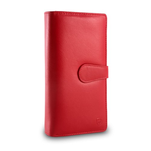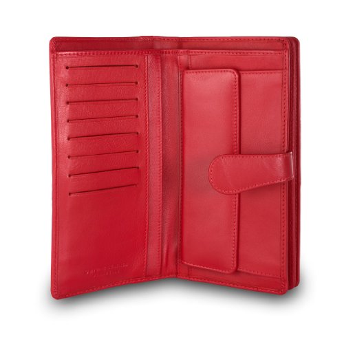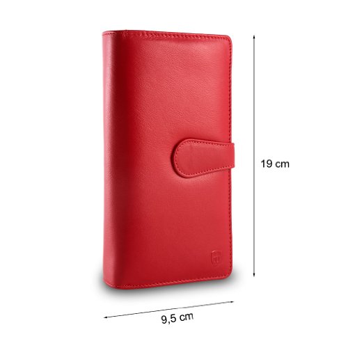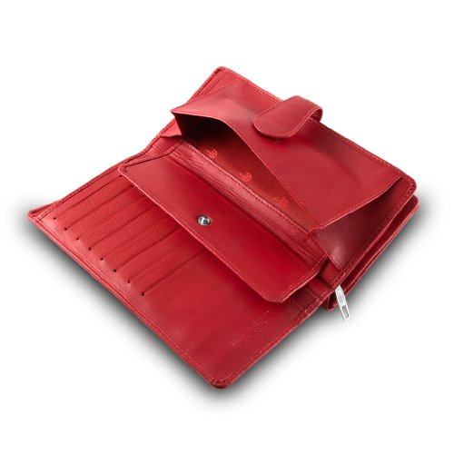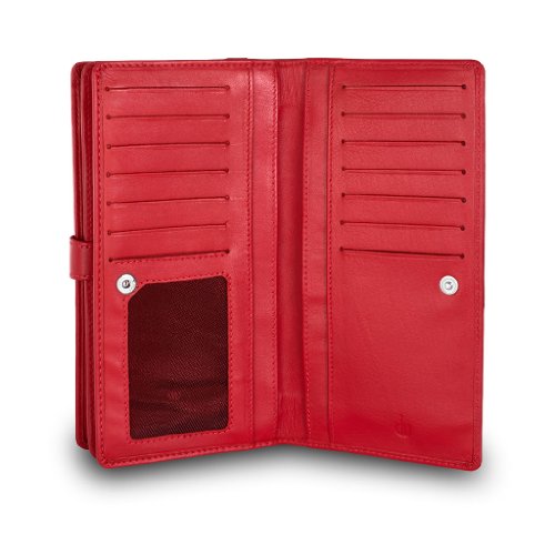 Brand:?dv® Material:?soft genuine calfskin leather Dimension (refer when wallet is closed):?9,5 ×?19 × 3,8 cm Weight:?230 g Box:?Included Type:?Ladies Composition:?21 credit cards pockets, 2 coin purse pockets, 1 trasparent photo?section with black net, 1 bill pocket and 7 extra pockets Available colors: Black, Red. Solid colours
