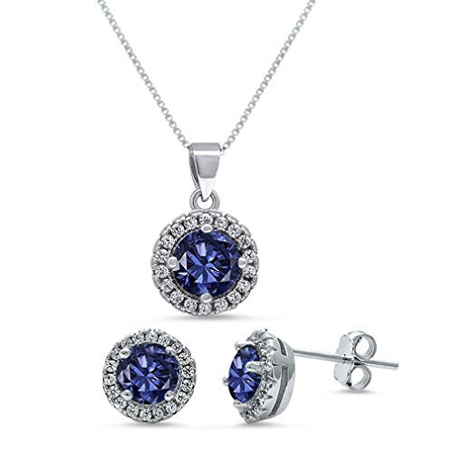 -. Title : Sterling Silver Round Cut Simulated Tanzanite Necklace and Earrings Set