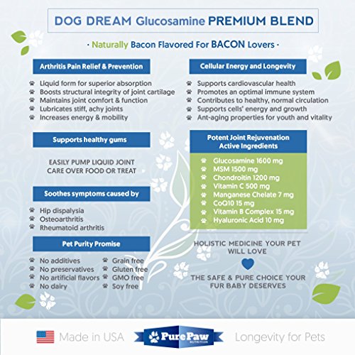 -. Title : Premium Liquid Glucosamine for Pets Best Dog & Cat Anti-Aging Natural Medicine for Joint Arthritis & Hip Displaysia Pain Relief Chondroitin MSM Hyaluronic Acid CoQ10 Vitamins C & B Complex Made in USA