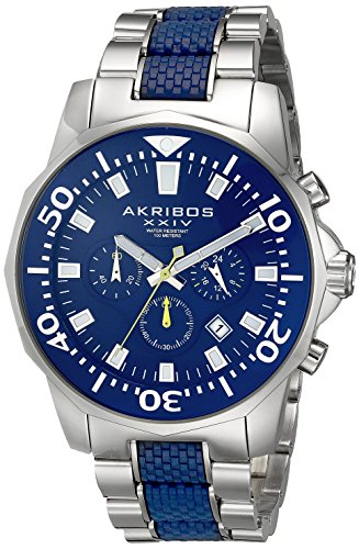 -. Title : Akribos XXIV Men's AK561BU Conqueror Blue and Silver Stainless Steel Divers Chronograph Watch