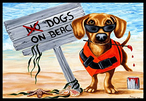 -. Binding : Misc. -. Brand : Caroline's Treasures -. Color : Multicolor -. EAN : 0638508174178 -. Feature : Indoor or outdoor doormat 18 inch by 27 inch action back felt floor mat/carpet/rug / Made and P.R.Inted in the USA / Black binding tape is Sewn around the mat for durability and to nicely Frame the artwork / Durable and fade resistant / Wash with high pressure from your Garden hose or with a power washer. Use cleaner that does not produce Suds -. Label : Caroline's Treasures -. Manufacturer : Caroline's Treasures -. Model : AMB1341MAT -. MPN : AMB1341MAT -. NumberOfItems : 1 -. PackageQuantity : 1 -. PartNumber : AMB1341MAT -. ProductGroup : Home -. ProductTypeName : HOME -. Publisher : Caroline's Treasures -. Size : 18" x 27" -. Studio : Caroline's Treasures -. Title : Caroline's Treasures AMB1341MAT The Dog Beach Dachshund Indoor or Outdoor Mat, 18" x 27", Multicolor -. UPC : 638508174178