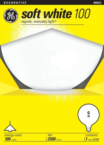 Studio : GE Lighting Publisher : GE Lighting Binding : Tools Home Improvement Product Description GE 49781 Soft White Globe G40 100-Watt, Use original GE 's Soft White when you need a light without glare and harsh shadows. Bulb G40 Base: Medium Screw (E26),-Wattage: 100 Voltage 120, Rated Life: 2500 hours. GE incandescent lamps represents the state of the art of lamps for residential and commercial use, as well as special purpose lamps for decorative or display applications. In an incandescent lamp, light is generated by heating the filament to incandescence. The hotter the filament, the more efficient it is in converting electricity to light. However, when the filament operates hotter, its life is shortened so the design of each lamp is a balance between efficiency and life. This is why lamps of equal-Wattage may have different lumen ratings and different life ratings. Incandescent lamps of similar size are commonly available with different-Wattage ratings. The fixture-Wattage limit should not be exceeded. For product questions regarding GE Lighting products, please call GE Hotline 1-800-435-4448, Monday ? Friday, 8:00 a.m. - 6:00 p.m. EST Follow the recording prompts or ‘stay on the line’ to speak directly to a customer service rep. 0