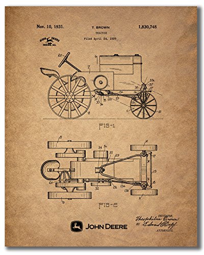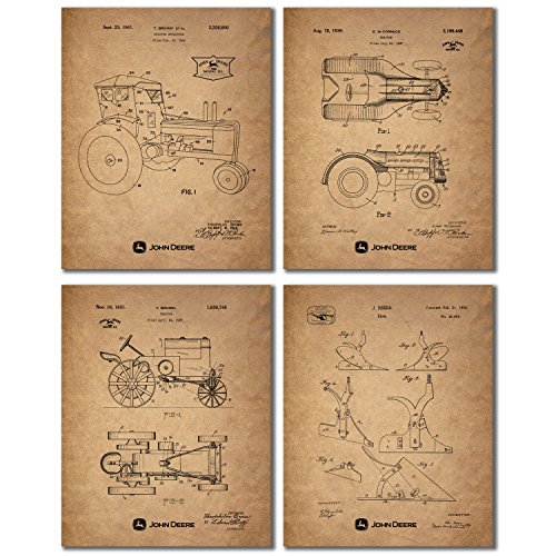 John Deere Patent Prints - Set of Four Vintage Tractor Plow Wall Art Decor Photos