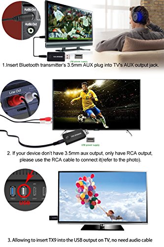 NOTE: It does not support the samsung smart TV, It will have audio latency✔ USER-FRIENDLY - Effective diameter range around 10 M /32ft(IN OPEN AREA); Easy pairing with Bluetooth stereo headset, headphones, speakers and other Bluetooth stereo receiving devices