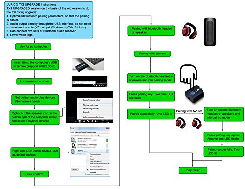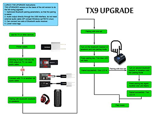 LURICO Bluetooth audio transmitter plug and play is a very handy device. It can work with any type and brand of devices such as TV, PC, CD Player, iPod, Kindle Fire, MP3/MP4, etc. Up to 32 feet working range (IN OPEN AREA), it is easy to realize auto pairing with Bluetooth stereo headset, Bluetooth headphones, Bluetooth speakers and other Bluetooth stereo audio systems, and you don't need to install the drivers.