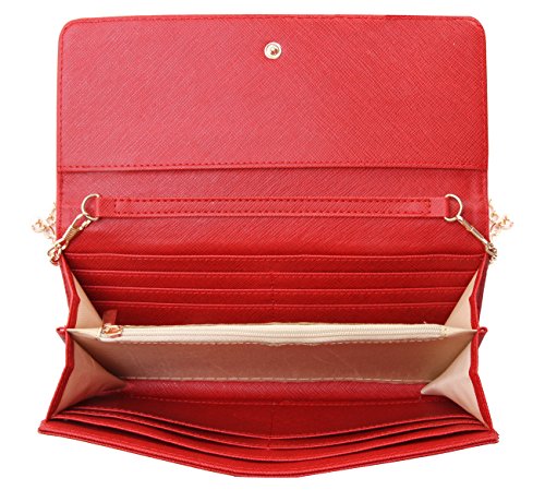 | Women's Faux Saffiano Bifold Cross Body Clutch Wallet |