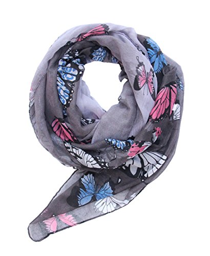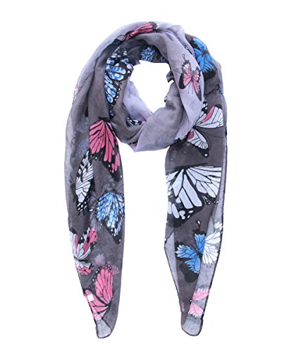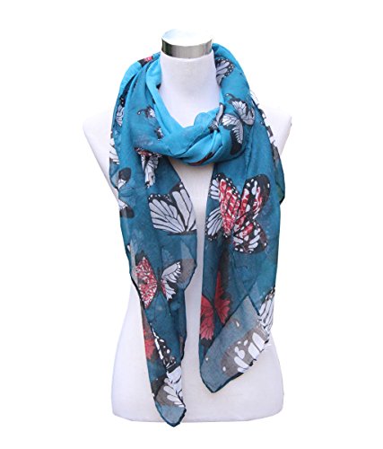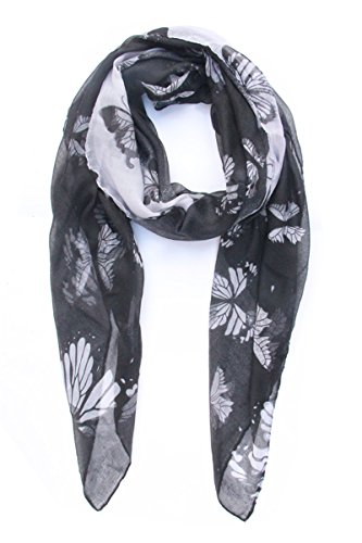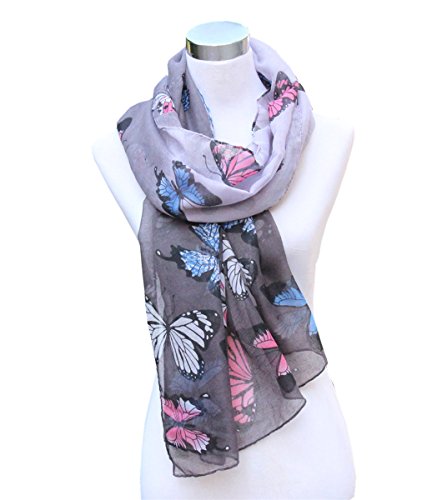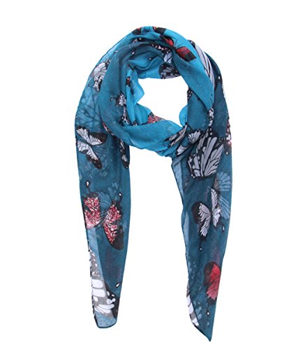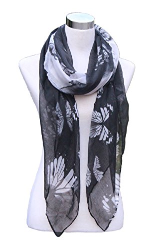 | Lucky Leaf Women Long Lightweight Cozy Chiffon Flowers Butterflies Printed Scarf Shawl Wrap |