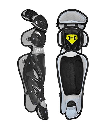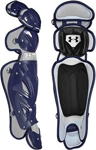 Studio : Under Armour Publisher : Under Armour Binding : Misc. Product Description Pro Leg Guards...Secure Protection Snug Fit! Under Armour Pro Leg Guards feature: Constructed with extra thick plastic in areas which take most abuse Triple knee design increases mobility and protection Large diameter perforated foam for breathability Large ventilation ports on shin Gel knee pad absorbs impacts AEGIS Microbe Shield kills unwanted bacteria and odors Extra thick straps secure fit Removable second toe Colors: Black/Silver Navy/Silver Royal/Silver Scarlet/Silver Length: 161/2" Under Armour Baseball...Built For Domination! 0