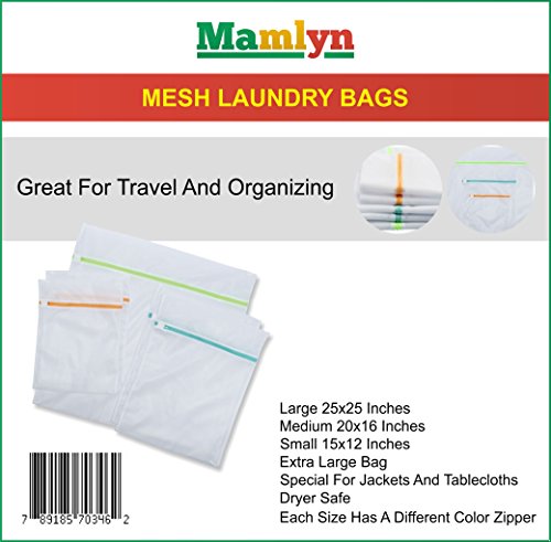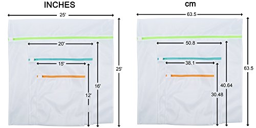 - CONFORM TO YOUR NEEDS: Our 5 mesh laundry bags come in 3 different sizes so as to accommodate even your most demanding needs. Each pack includes 1 Extra-large (25"x25"), 2 Large (20"x16"), and 2 Medium (15"x12") wash bags. They are lightweight, portable and reusable. Each size has a different color for your extra convenience.