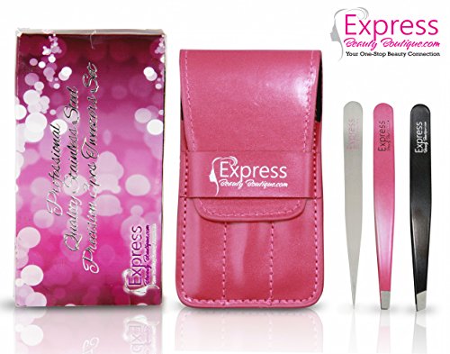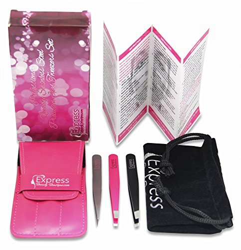 PROMO!! Professional Quality Stainless Steel Precision 3pcs Tweezers Set. Perfect for shaping eyebrows and removing facial and body hair. Includes...
