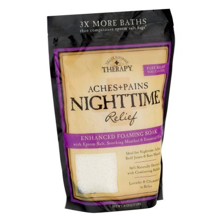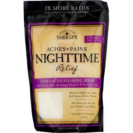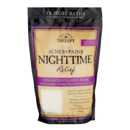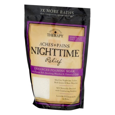 Studio : Village Naturals Publisher : Village Naturals Binding : Misc. Product Description Village Naturals Therapy Aches Pains Night Time Relief. Fast relief you can feel. Enhanced foaming soak with spoon salt, soothing menthol essential oils. Ideal for night time aches, stiff joints sore muscles. 96% Naturally derived with comforting bubbles. Epsom sea salt blend to relax restore. Menthol to soothe comfort. Lavender chamomile essential oils to unwind calm. 0