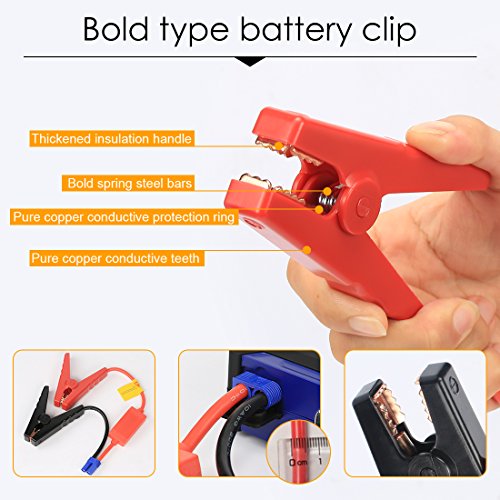 - [Adavanced Safety Protection] The smart alligator clamps has over current protection; short circuit protection; overload protection; over-voltage protection; over-charge protection.The high quality lithium battery which allow it to provide stable strong peak and current voltage,but not explode.