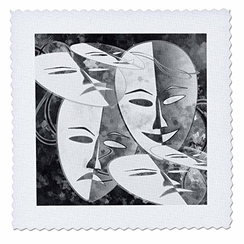 3dRose Theater Masks. Carnival. Grey & White. - Quilt Square, 14 by 14-Inch (qs_221535_5)