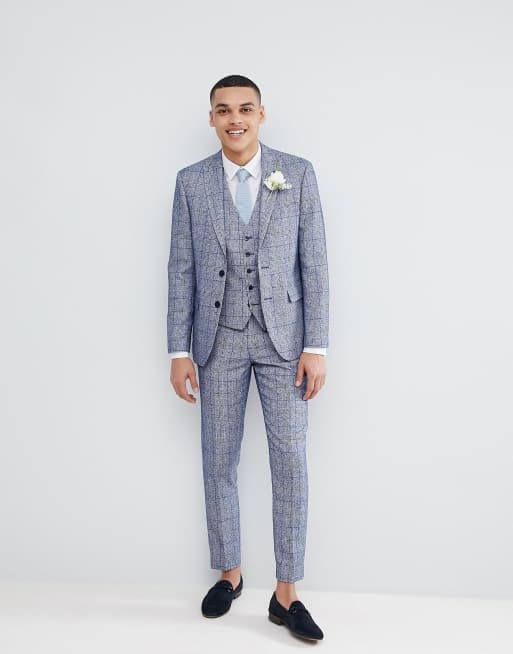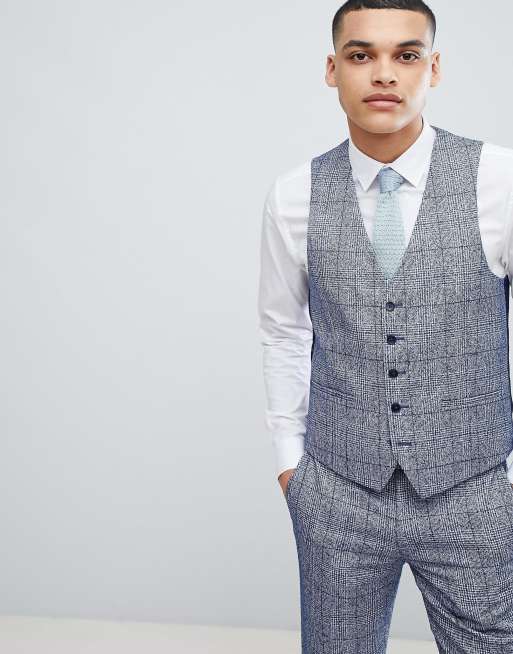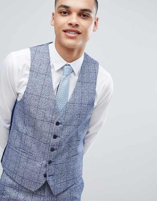 Moss London Wedding Skinny Vest In Fleck Check
