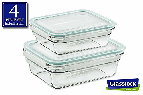 Airtight Anti-Spill Proof Tempered Glasslock Storage Rectangular Containers 4pc set~Microwave & Oven Safe