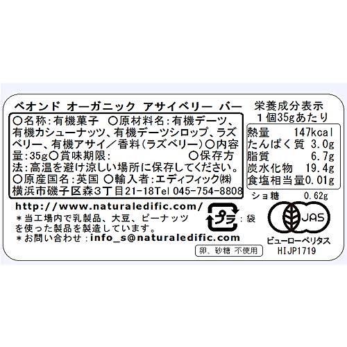 原材料:有機デーツ、 有機カシューナッツ、有機アガベシロップ、ラズベリー、有機アサイ/香料(ラズベリー)