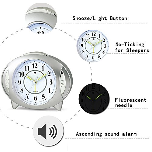 YOUOWO Analog Alarm Clock Kids Clock Small Travel Quartz Alarm Clock Kitchen Clocks Non Ticking...