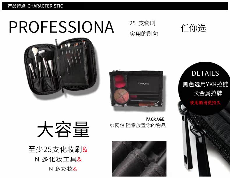 黑色刷包与玫红色刷包LOGO和拉链是不相同的!以实物为准