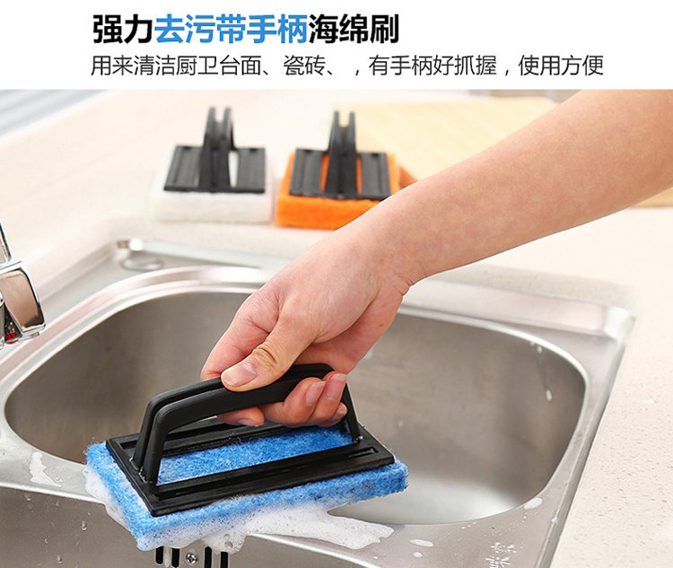 强力去污带手柄海绵清洁擦 地板刷灶台瓷砖擦 厨房水槽魔力刷子