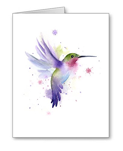 -. Feature : "Hummingbird" artwork by watercolor artist DJ Rogers. / Note card size is 4.25 x 5.5 inches / Matching white envelopes included. / Note cards are blank inside for your personal message. / Suitable for framing.