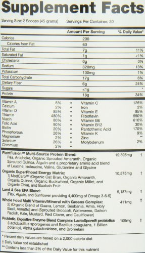 -. Binding : Health and Beauty -. Brand : Plant Fusion -. EAN : 0890985001600 -. Feature : A concentrated source of beta-glucan / An efficient energy source low in calories but high in nutritional density / Is easily digestible and tastes great -. IsAdultProduct : 0 -. Label : Plant Fusion -. LegalDisclaimer : The statements and claims made about products have not been evaluated by the United States Food and Drug Administration (FDA). The products are not intended to diagnose, treat, cure, or prevent any disease. The content and information provided directly or via links to other websites are for information purpose only. None of this information is intended as a substitute for advice from your physician or other health care professional. The information should not be used to diagnosis or treatment of any health problem or for prescription of any medication or other treatment. You should consult with a healthcare professional or your physician before starting any diet, exercise or supplementation program, before taking any medication,or for any health problem. The information is not comprehensive and does not advise or recommend self-management of health issues. Everyone is different and may react differently to different products. You should always consult your physician about interactions between medications and nutritional supplements you are taking. -. Manufacturer : Plant Fusion -. Model : 00160 -. MPN : 122382-5 -. NumberOfItems : 1 -. PackageQuantity : 1 -. PartNumber : 122382-5 -. ProductGroup : Health and Beauty -. ProductTypeName : HEALTH_PERSONAL_CARE -. PublicationDate : 2013-04-27 -. Publisher : Plant Fusion -. Size : 2 lb -. Studio : Plant Fusion -. Title : Plant Fusion Phood Shake, Vanilla, 31.8 Ounces -. UPC : 885367173488