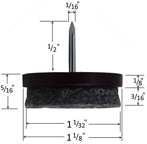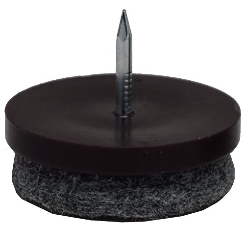 - Feature : 1" DIA. HIGH DENSITY FELT RESISTS COMPRESSION - Lasts far longer than stick-on pads. Gray color hides dust/dirt. / PERMENANT ATTACHMENT - Glides nail on, while the felt is epoxied to base at the factory and is guaranteed to stick FOREVER / ESPRESSO NYLON BASE - Blends well with all darker woods / EZ STORAGE - Reclosable box makes it simple to store any extras. 32 pcs. / UNCONDITIONALLY GUARANTEED - Buy 'em, Try 'em, Use 'em, Abuse 'em for up to 30 days. If you're not happy for ANY reason, just return them for a full, "no questions asked" refund