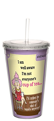Tree-Free Greetings 16-Ounce Double-Walled Cool Cup with Reusable Straw, Aunty Acid Cup Of Tea (CC98603)