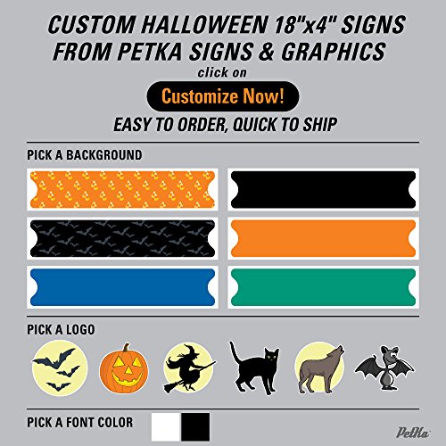 PetKa Signs and Graphics "Custom Halloween Sign, Your Logo Selection on Black Background" 18"x4" Aluminum Sign