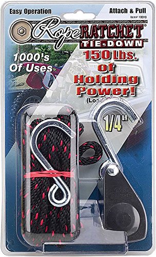 Carolina North 10010 1/4" Rope Ratchet with 8' Solid Braided Polypropylene Rope, 150 lbs Capacity