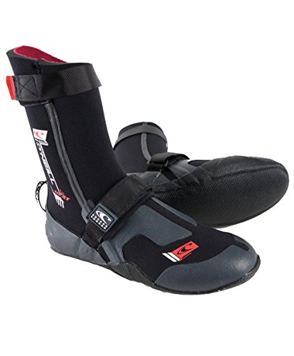 The new O'Neill Heat RT or Round Toe is the ideal boot for surfing in cold or freezing waters. This 7mm Surf boot is designed for great traction and durability, and the Heat Series surfing boots are incredibly warm. The 7mm thickness will keep your feet and toes warm even in arctic cold waters. Surfers looking for the best bootie, look no further than the O'Neill Heat Round-Toe Boot. Made of 100% super stretch fluid foam 7mm neoprene and a durable, yet soft sole, these boots will give you all of the performance most users will ever need. The seams are sealed and blind stitched to prevent water seepage. Shin and ankle straps helps tighten boots to the leg to further prevent flushing. A heel pull tab assists in putting on the boot. The boots heel and toes are reinforced for strength, durability and wear resistant's. Boots are available in multiple sizes, black in color and are covered by a 12 month limited warranty.Feature