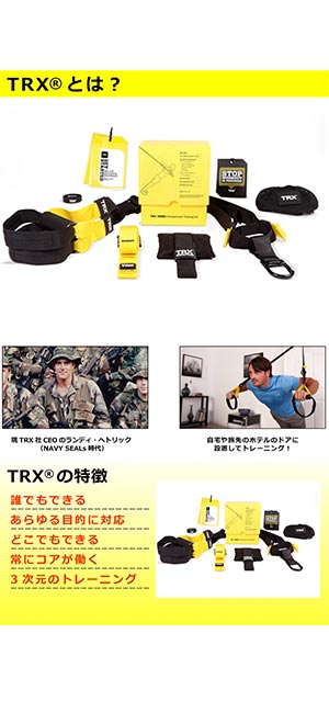 TRXとは、誰でもできる・あらゆる目的に対応・どこでもできる・常にコアが働く・3次元のトレーニング
