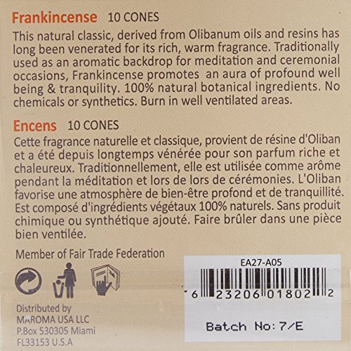 Maroma Eda Cone Incense, Frankincense, 10 Count
