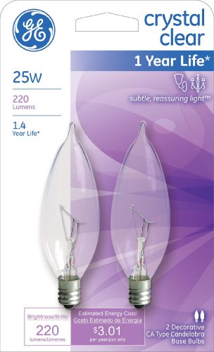 GE Lighting Crystal Clear 66104 25-Watt, 220-Lumen Bent Tip Light Bulb with Candelabra Base, 8-Pack
