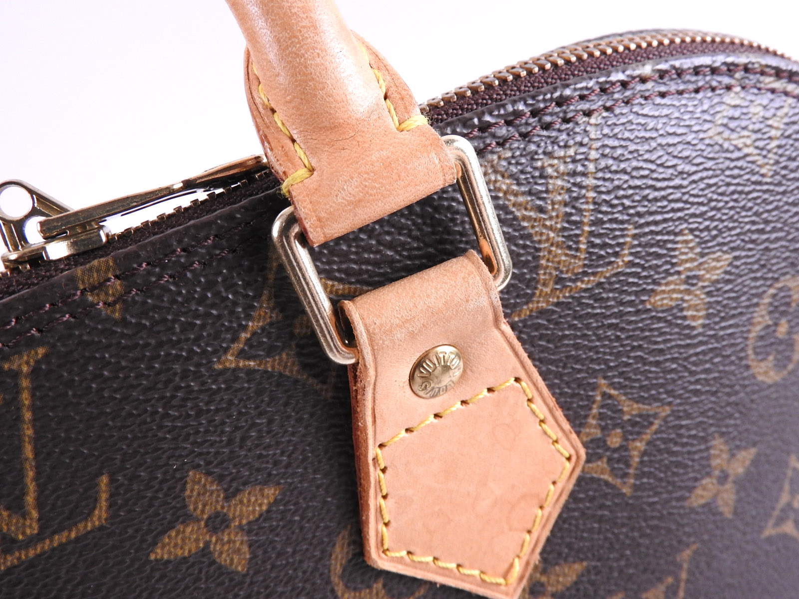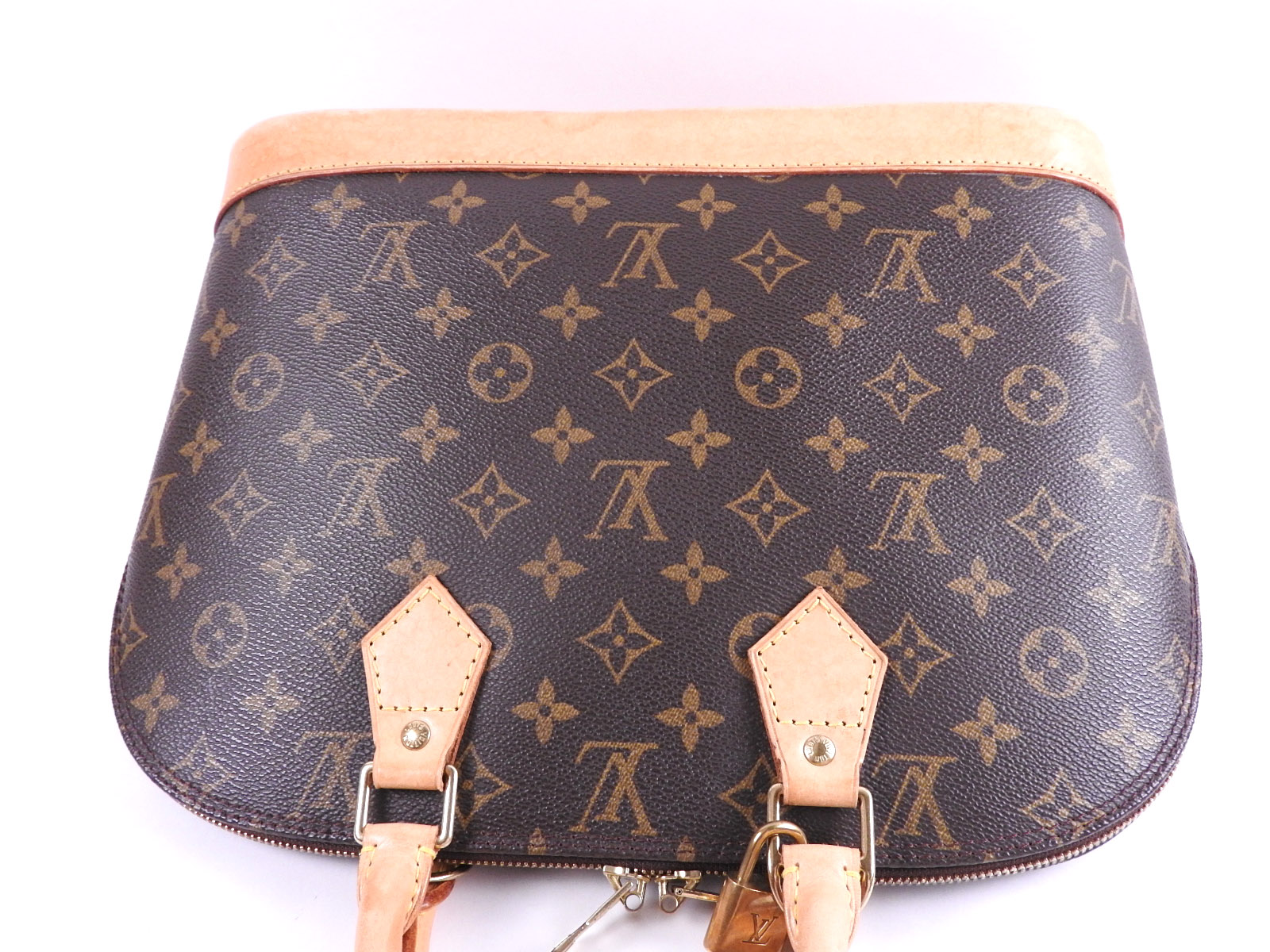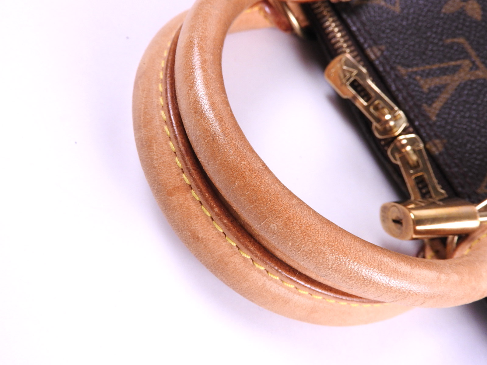 Monogram canvas: Slightly used feeling. Slight stains. Leather: Used feeling. Some scratches, stains, abrasions and tanning. |