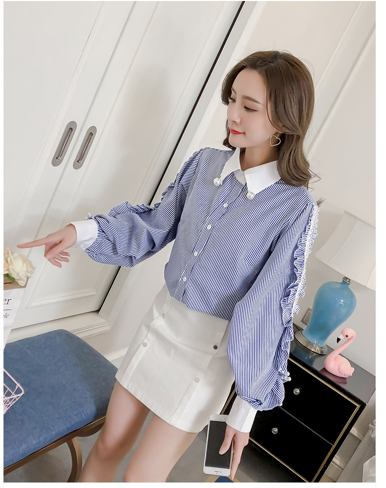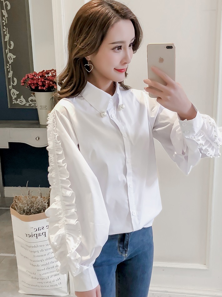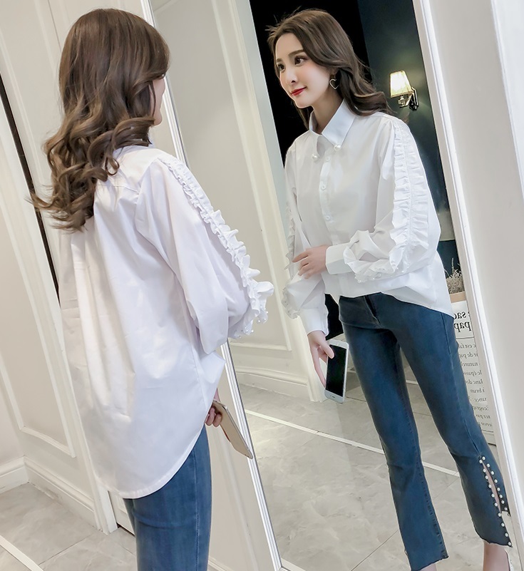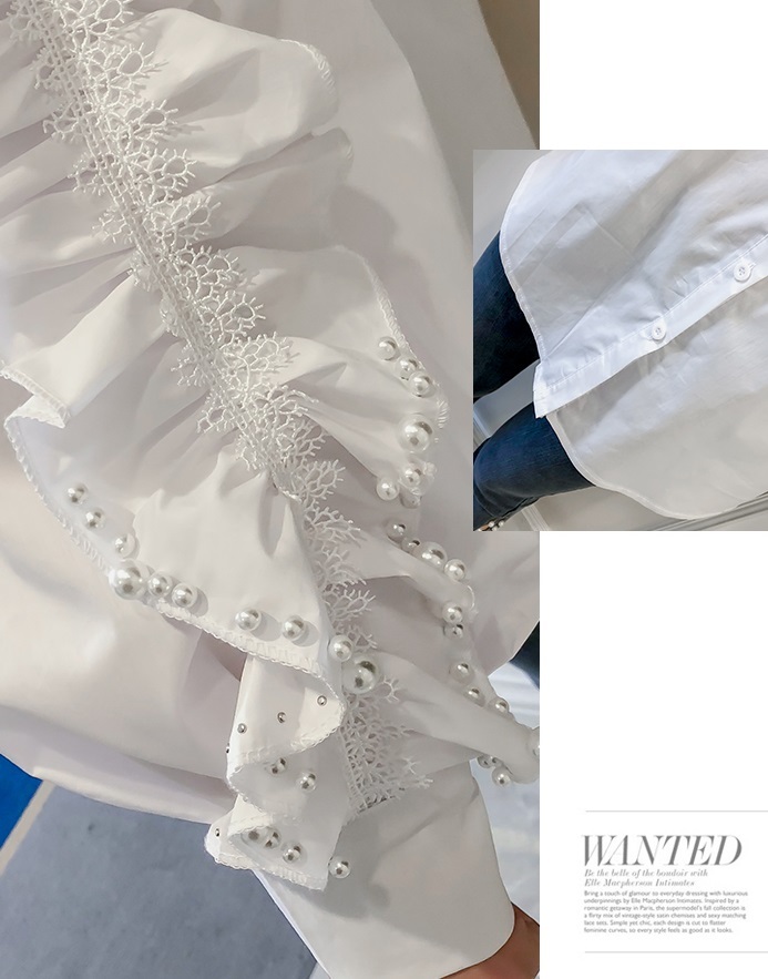 ショルダー部分にあしらったフリルとパールが女性らしい華やかさをプラスしてくれます。