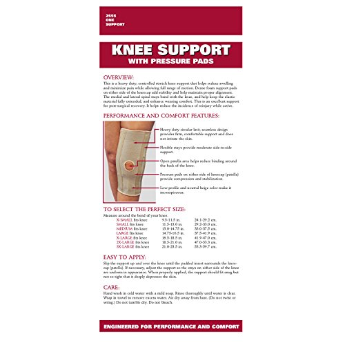 ReleaseDate : 2006-10-16 Studio : OTC Publisher : OTC Binding : Health and Beauty Product Description OTC brand (model 2555) knee support with pressure pads. This is a heavy duty, controlled stretch knee support that helps reduce swelling and minimize pain while allowing full range of motion. Dense foam support pads on either side of the kneecap add stability and help maintain proper alignment. The medial and lateral spiral stays bend with the knee, and help keep the elastic material fully extended, and enhance wearing comfort. This is an excellent support for post-surgical recovery. It helps reduce the incidence of reinjury while active. Use For: Sprains and strains, chondromalacia, osteoarthritis, patellofemoral tracking 0 |
