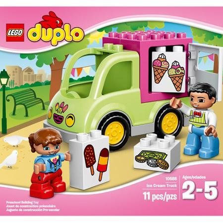 Studio : LEGO Publisher : LEGO Binding : Toy Product Description The buildable LEGO DUPLO Ice Cream Truck includes a child and ice cream seller LEGO DUPLO figures, and decorated bricks as story starters. LEGO DUPLO Town Ice Cream Truck: Choose a delicious treat from the LEGO DUPLO Ice Cream Truck Build the Ice Cream Truck and help the ice cream seller drive around looking for customers Then serve the children with the delicious ice creams and popsicles as they pay, using the decorated bricks Young children will love starting new stories as they learn basic building skills with the colorful LEGO DUPLO pieces, which are designed especially to be safe for little hands Includes 2 LEGO DUPLO figures: an ice cream seller and a child 0