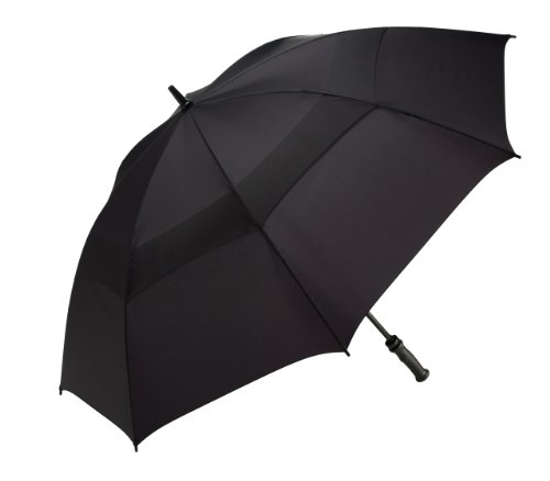 Studio : ShedRain ReleaseDate : 2011-04-08 Publisher : ShedRain Binding : Sports Product Description This Windjammer is an extreme sport umbrella made by ShedRain. The vented canopy is designed with an aerodynamic wind-resistant infrastructure to resist strong winds without inversion. 62 inch arc, automatic open with rubber grip handle. Durable fiberglass shaft and rib construction. 0