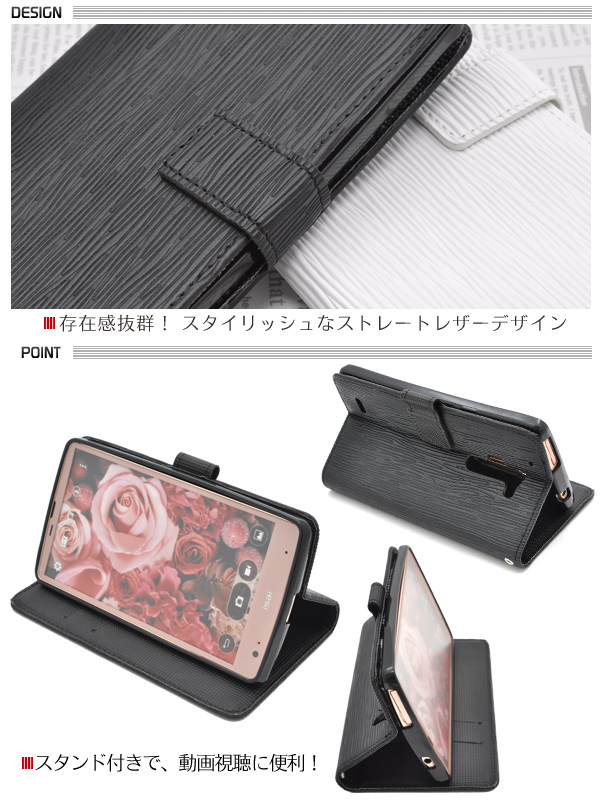 ストレートレザーデザインのisai FL LGL24/isai VL LGV31用スタンドケースポーチ。