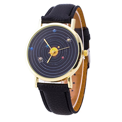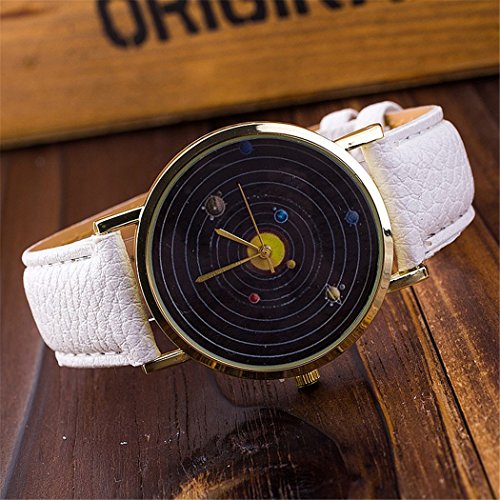 Vavna Top New Unisex Student Solar System Print Quartz Women's Leather Wrist Watch - White Gold