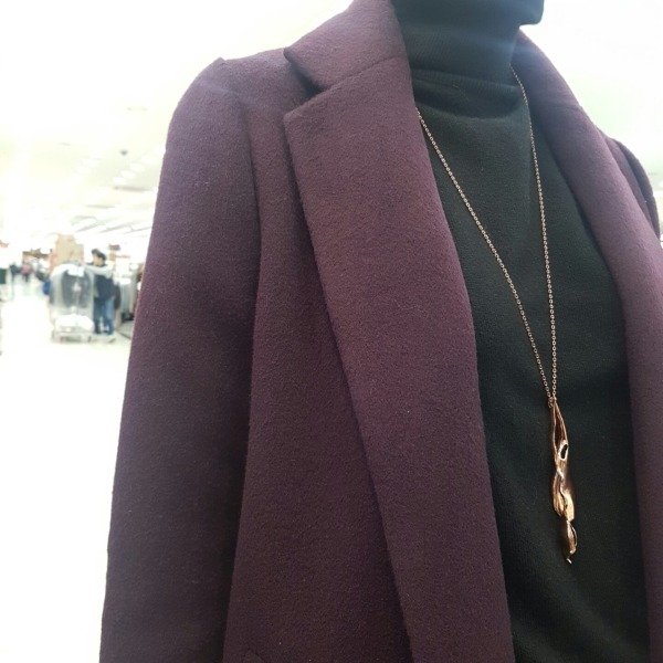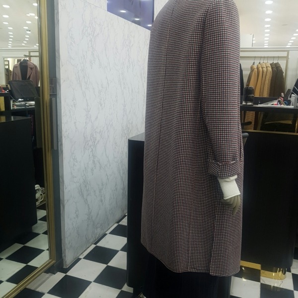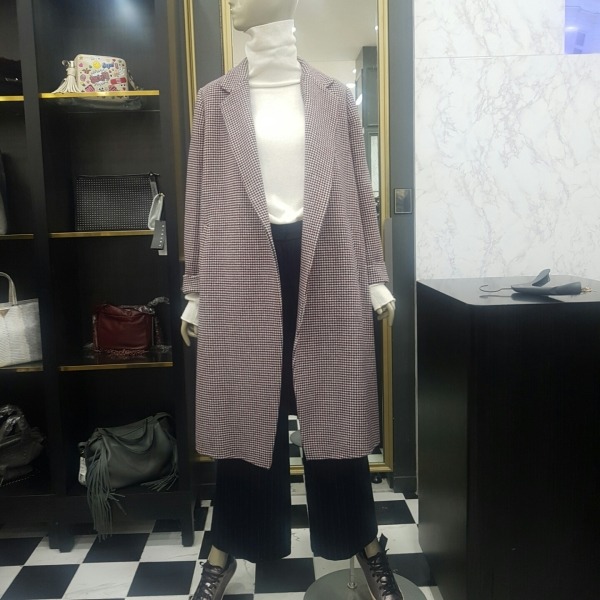 A라인의 롱 코트로 멀티컬러는 체크무늬이고 블랙,와인은 솔리드 컬러인 루즈한 라인의 코트입니다