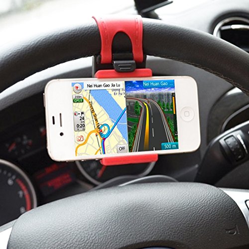 -. Feature : Easy installation, no need of extra tools, just clip the mount to your steering wheel in a second / Elastic fixation design: With elastic fixation rubber band, the size of steering wheel won't effect the installation / Protection: the device is embedded with soft silicone pad, which protect you phone from scratching or gash, etc / Compatibility: The cell phone clip opening is up to 86mm, fits for cell phone up to 5.5 inches / Works with all smartphones and GPS devices, can hold devices encased in covers and cases