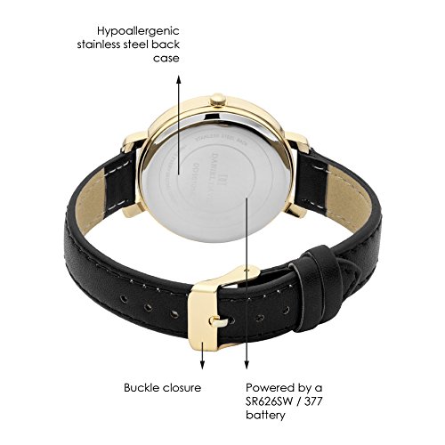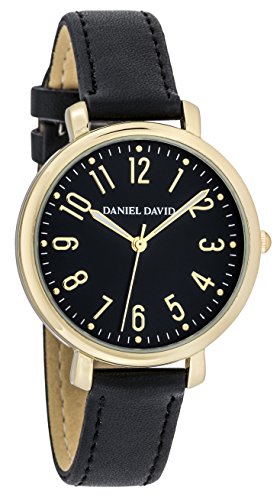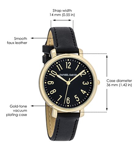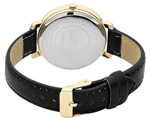 Daniel David Women's | Elegant Gold-Tone Black Faux Leather Watch | DD16104